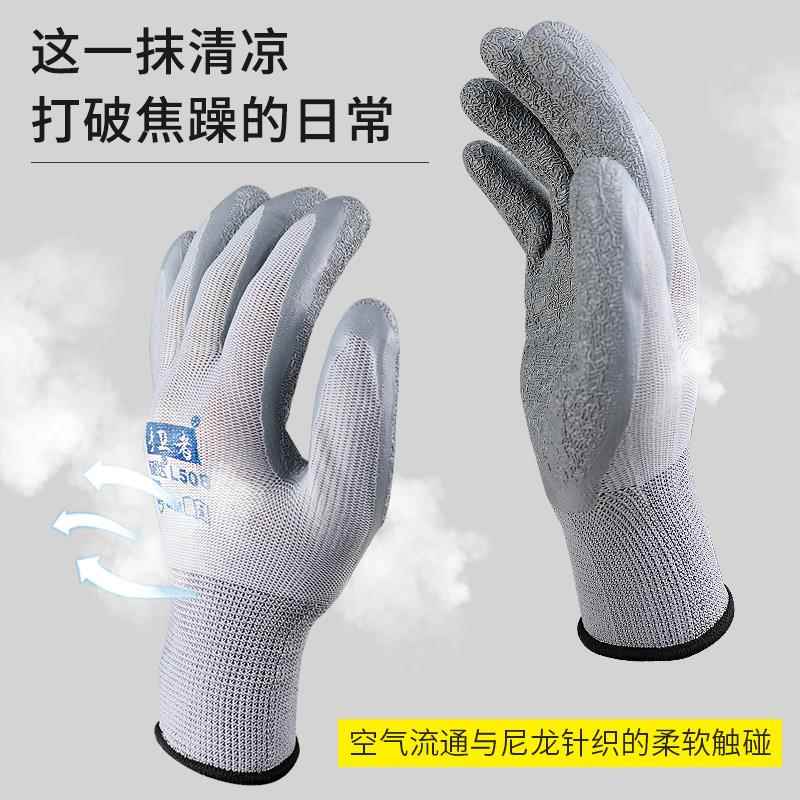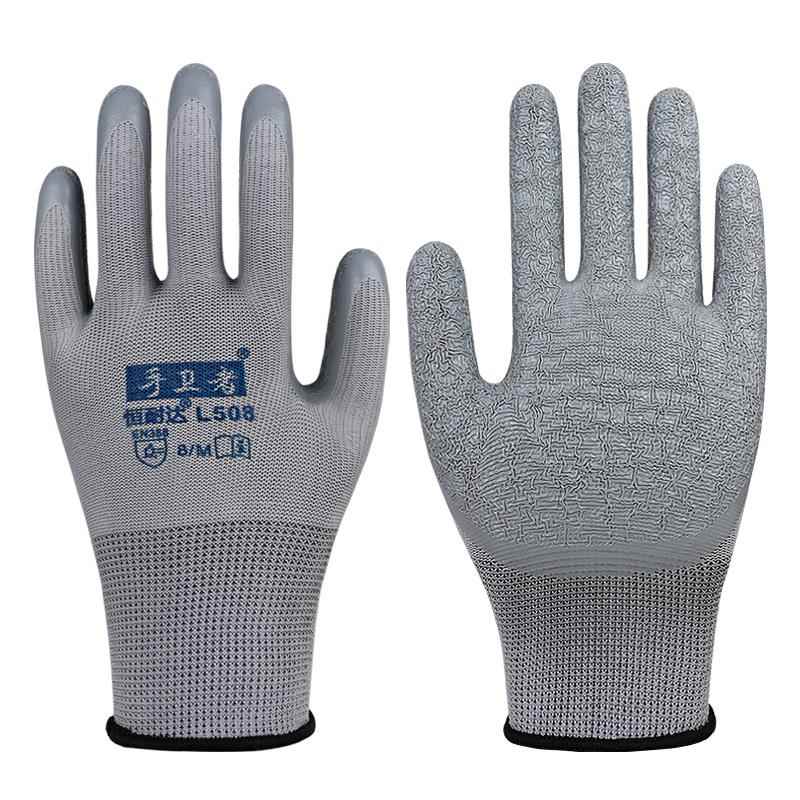 恒耐达L508劳保皱纹手套耐磨工作乳胶浸胶防滑透气劳动防护工地