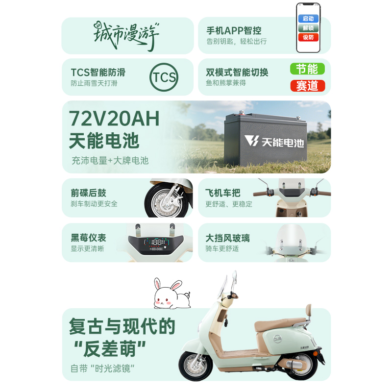 宇宙plus黄油小熊电动摩托车 爱玛元 百亿补贴限量 门店自提