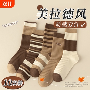 中筒袜纯色棉袜防臭咖色长袜 秋冬季 美拉德堆堆袜子女2025新款 爆款