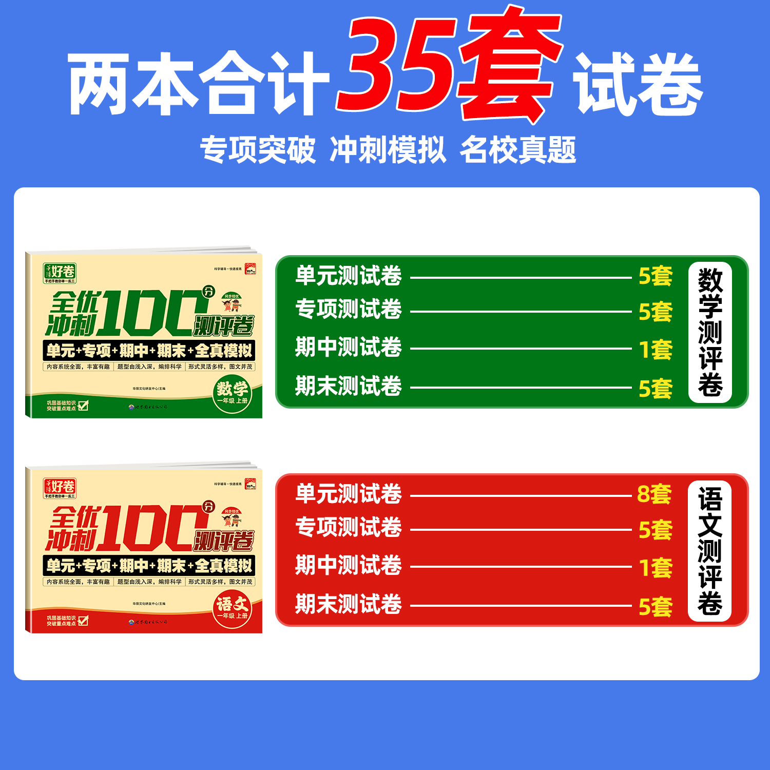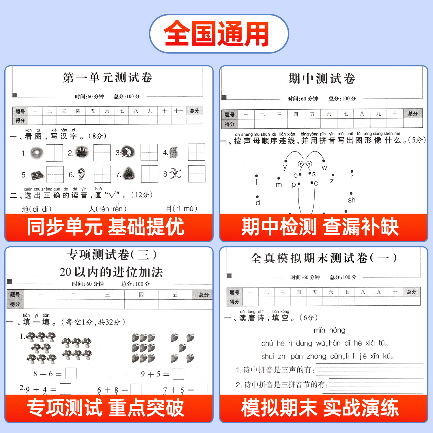 语文数学同步练习册小学卷子资料单元 全优冲刺100分测评卷人教部编版 期中期末考试卷练习题 一年级上下册试卷测试卷全套 2025新版