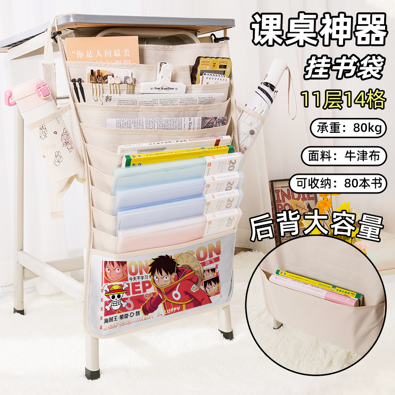 海贼王路飞佐罗周边书袋侧挂小学生桌边挂书袋初中生教室课桌收纳袋高中生书桌旁书本挂袋大容量高颜值二次元