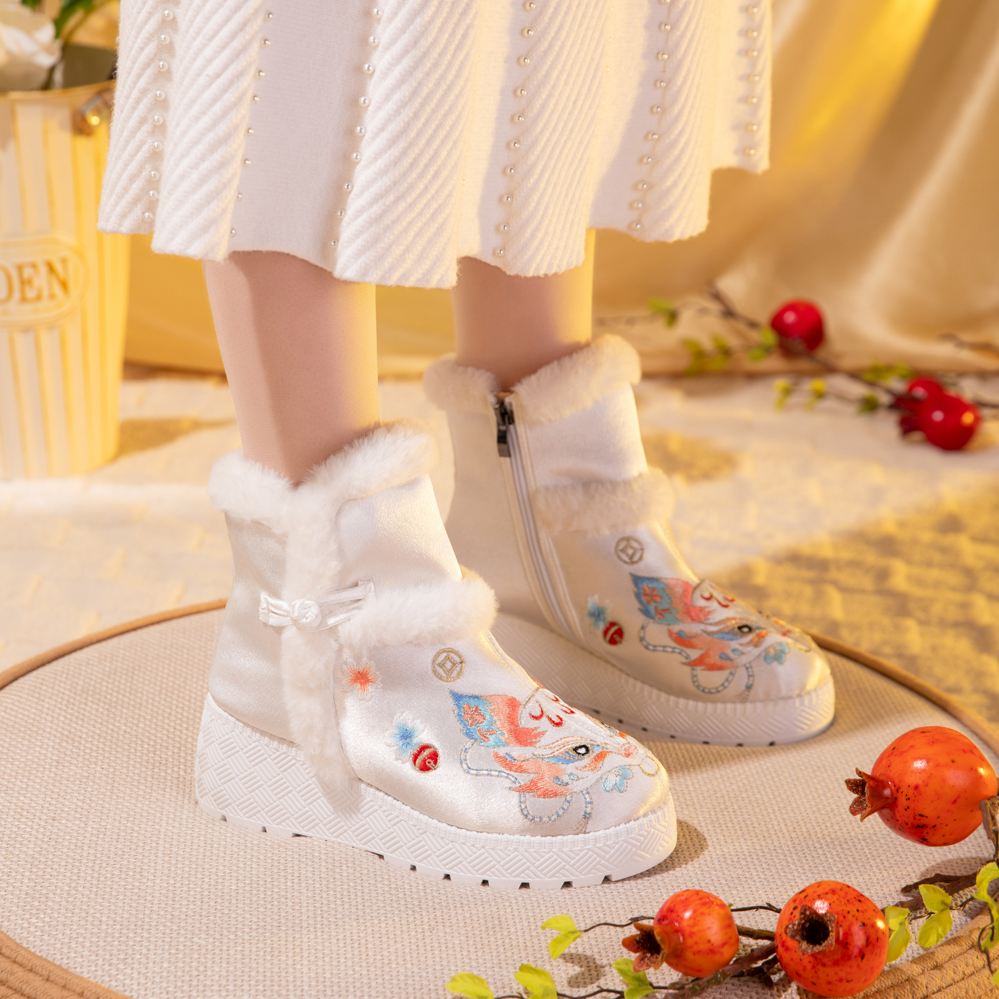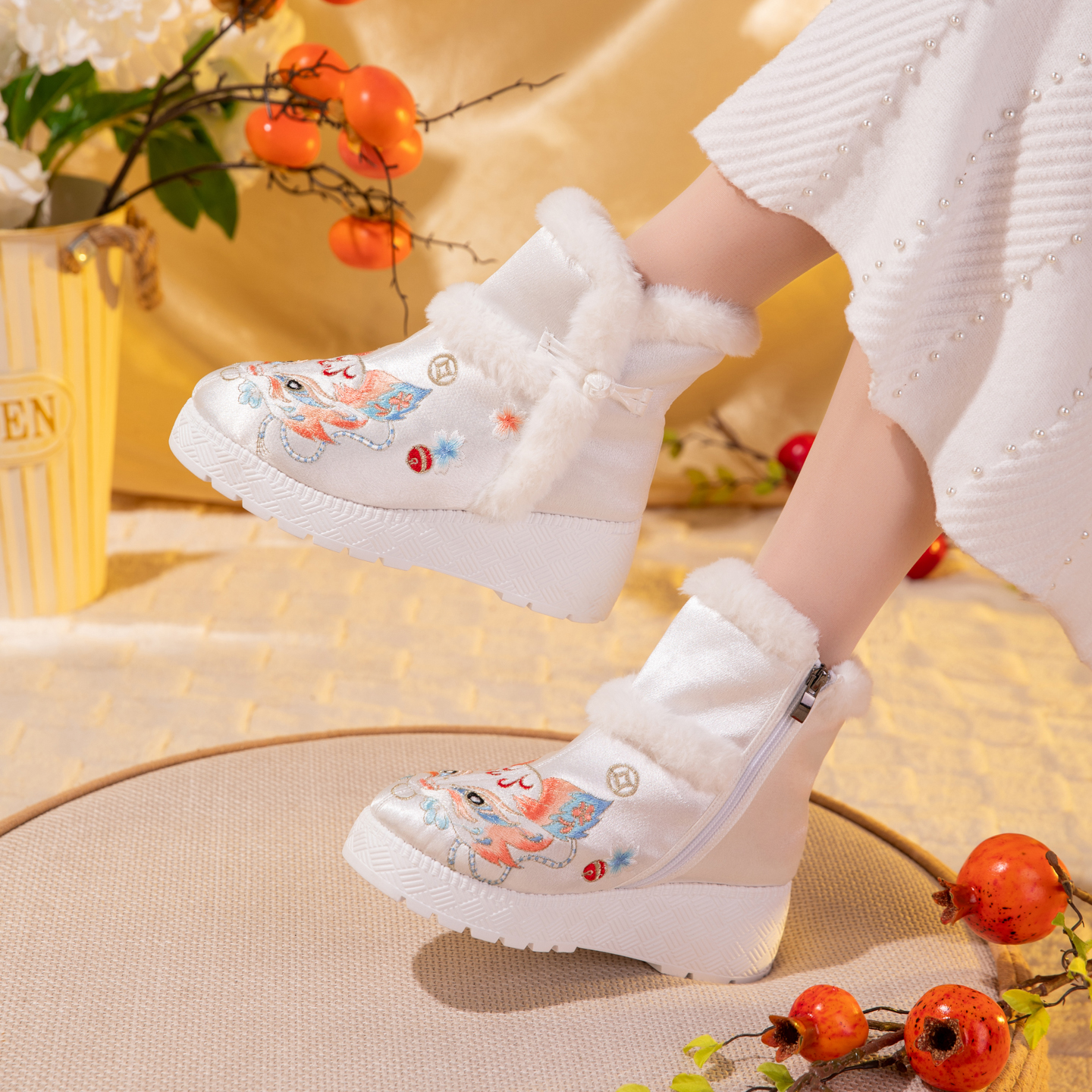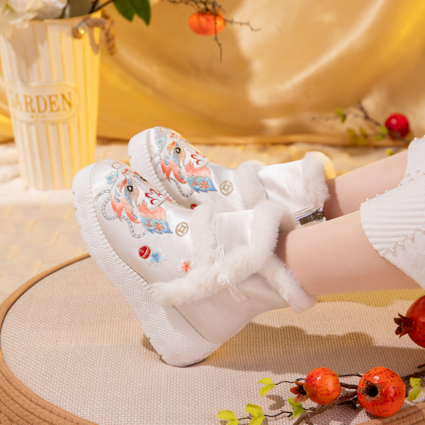 汉服靴 厚底棉靴加绒加厚民族风雪地靴新中式 中国风靴子女冬季 新款
