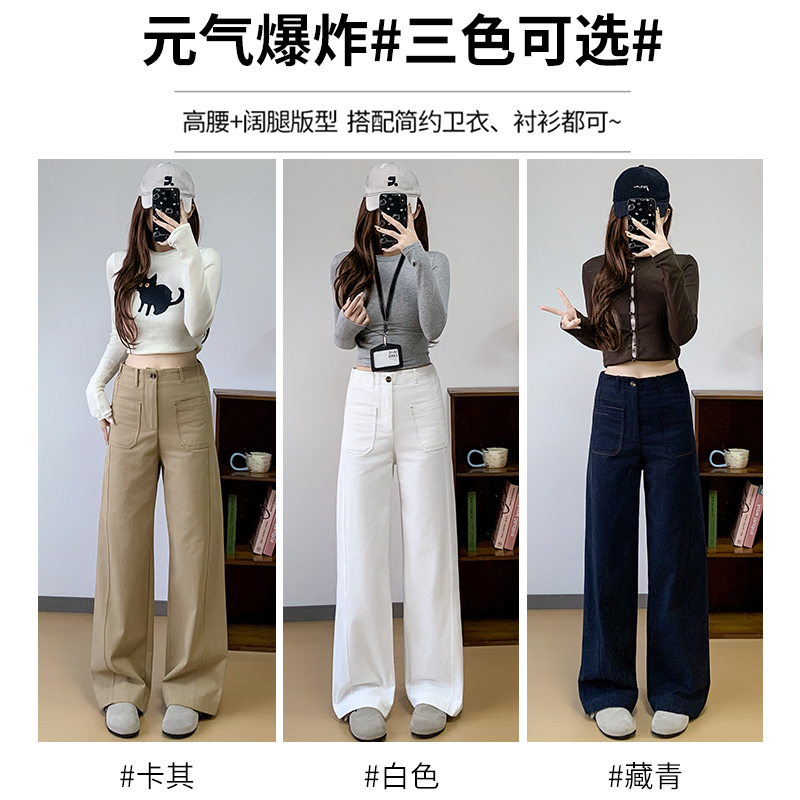 裤 子高级垂感宽松高腰直筒阔腿裤 2025春秋季 休闲裤 新款 卡其色西装