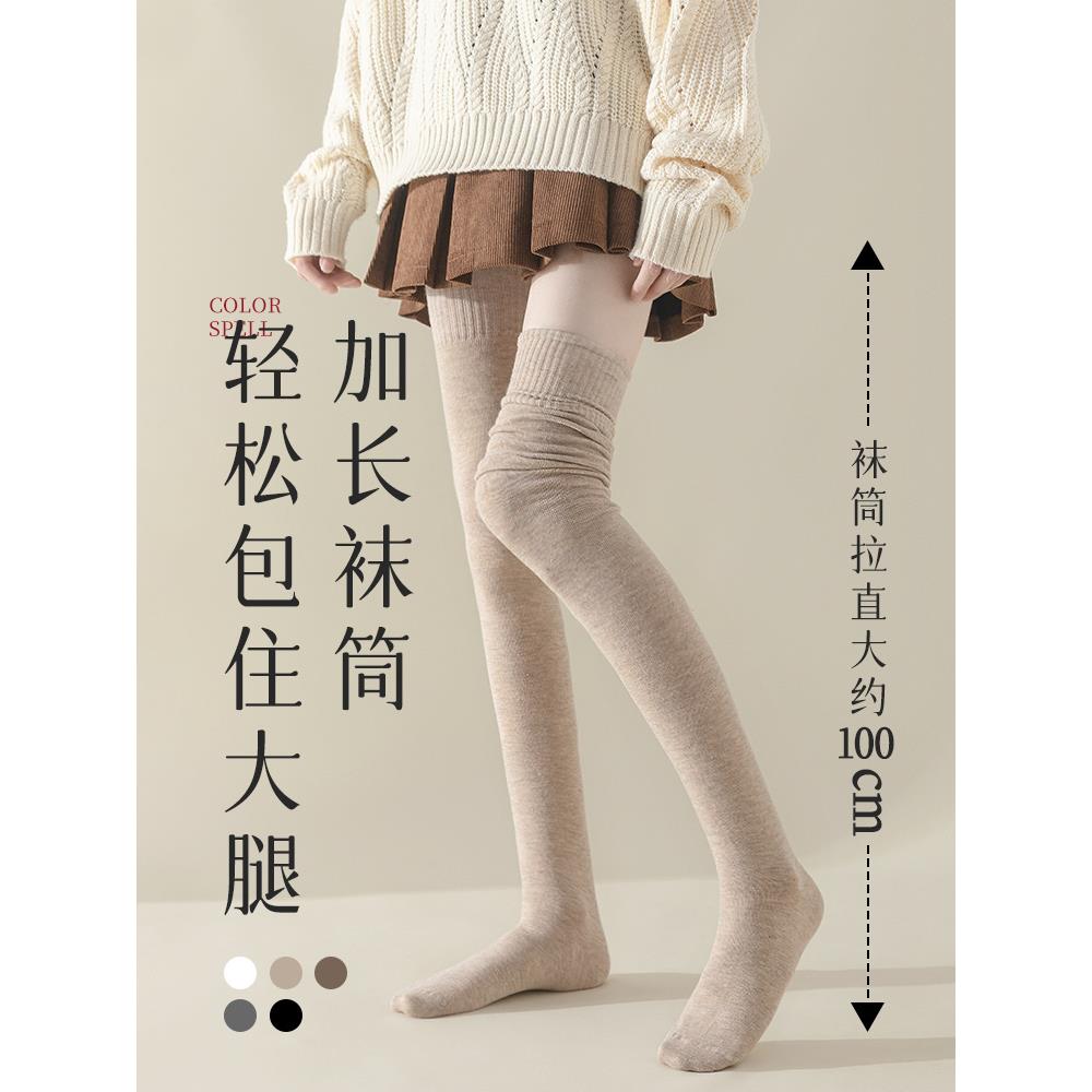 过膝袜子女秋冬款 纯棉纱线长筒袜加长保暖高筒防滑护膝大腿袜春秋