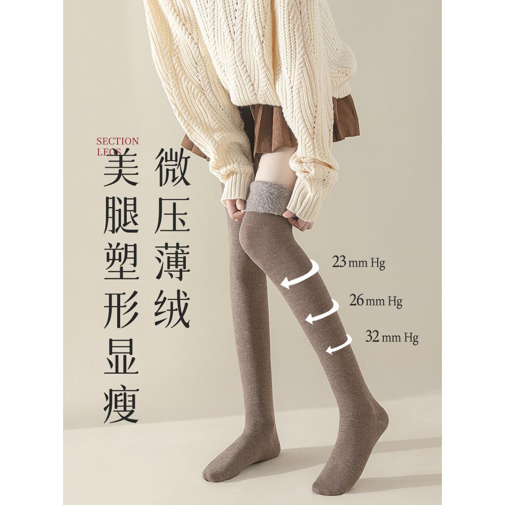 羊毛小腿袜子女微压秋冬季 显瘦长筒防滑不掉筒毛绒冬天保暖高筒袜