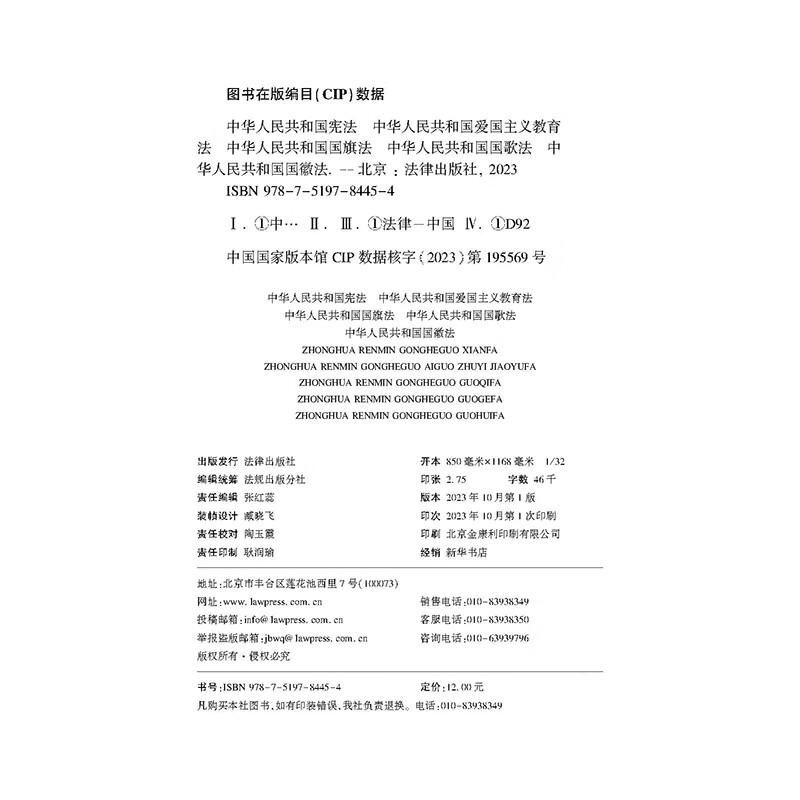 法律出版 9787519784454 中华人民共和国宪法 国歌法 国徽法 国旗法 2023新版 爱国主义教育法 社 法律法规条例单行本 五合一