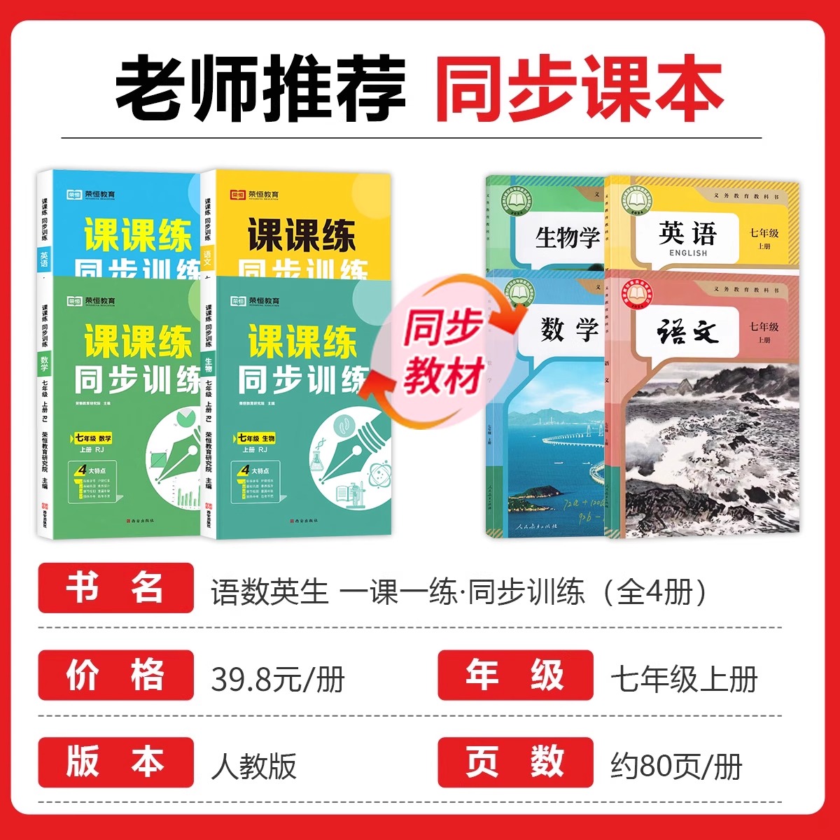 七年级下册同步练习册语文数学英语地理生物全套配套人教版 初一小四门初中必刷题专项训练试卷测试卷上册7上B课堂语数英历史荣恒