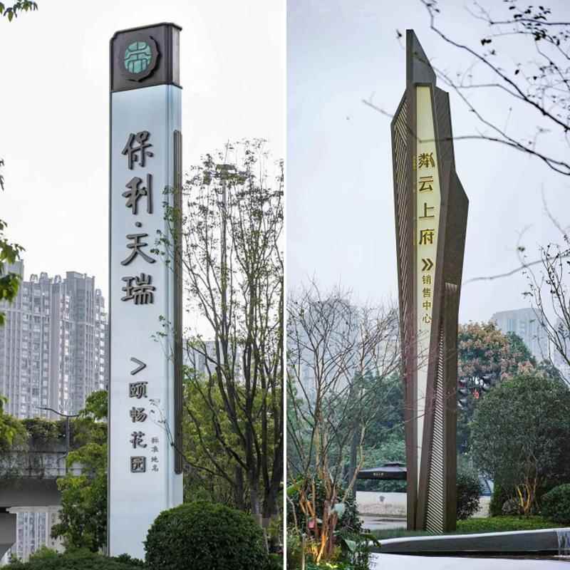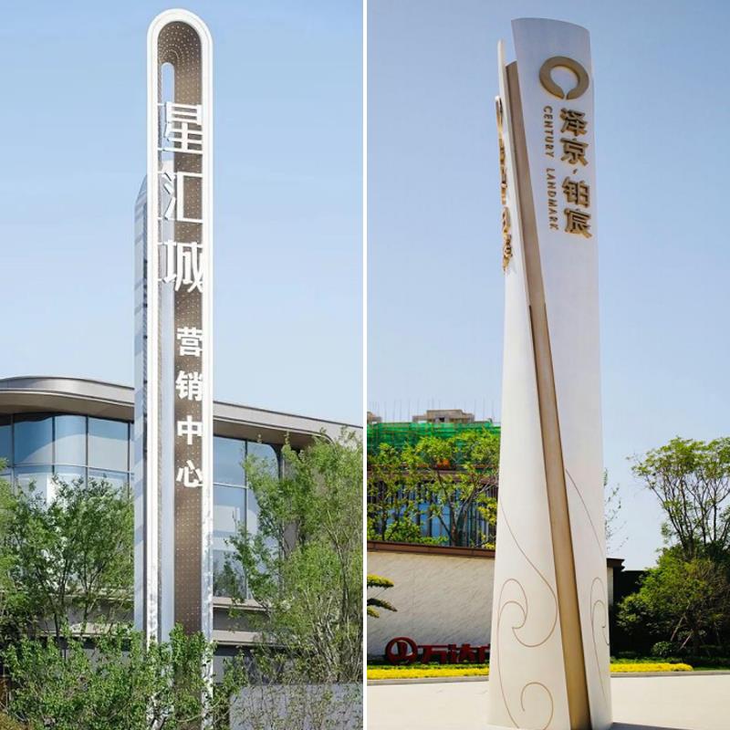大型不锈钢精神堡垒导向牌定制雕塑户外公园林景区发光立式 标识牌