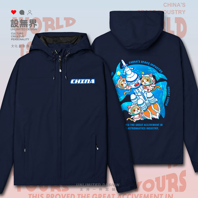 原创中国航天航空飞船猫咪宇航员海洋鲸鱼冲锋衣男女外套设 无界