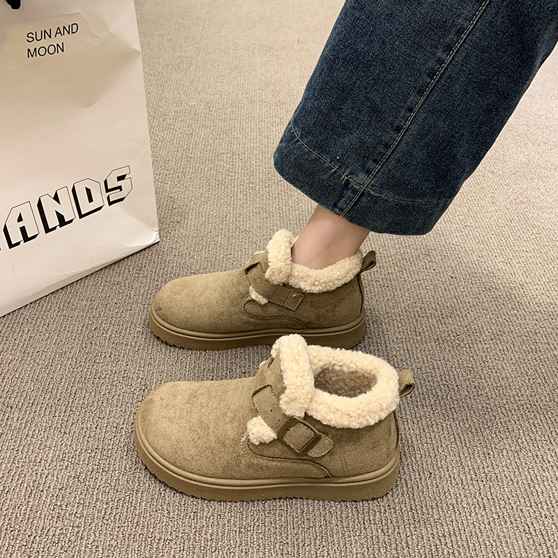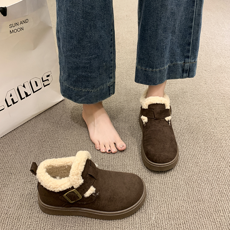 复古加厚保暖毛毛棉鞋 新款 防滑雪地靴 女2025秋冬季 厚底加绒勃肯鞋