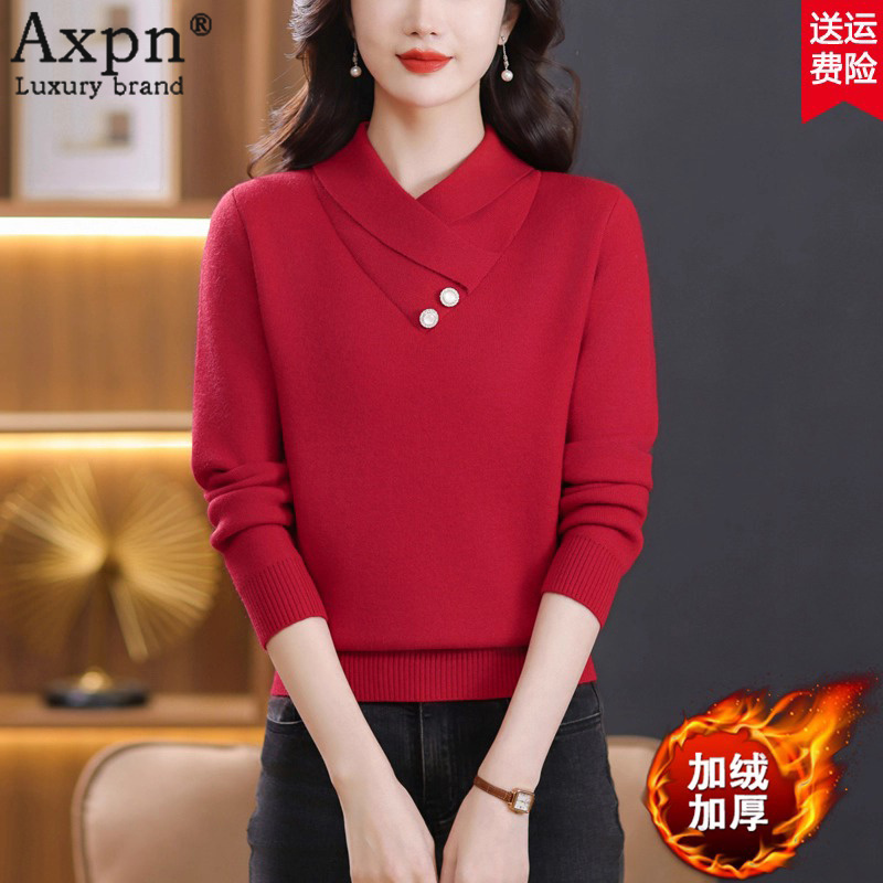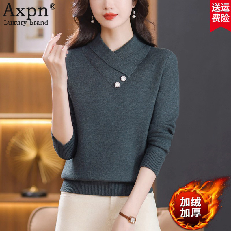百搭交叉领一体绒保暖打底衫 加绒加厚针织毛衣女2025秋冬新款 时尚