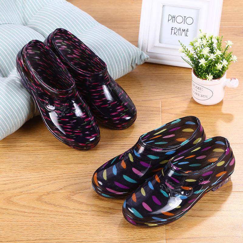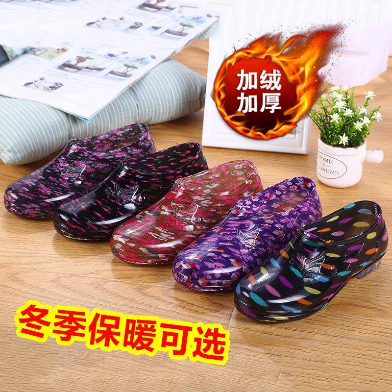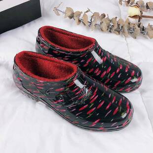 棉雨靴套鞋 低帮浅口厨房工作防滑防水鞋 胶鞋 雨鞋 女成人短筒夏 时尚