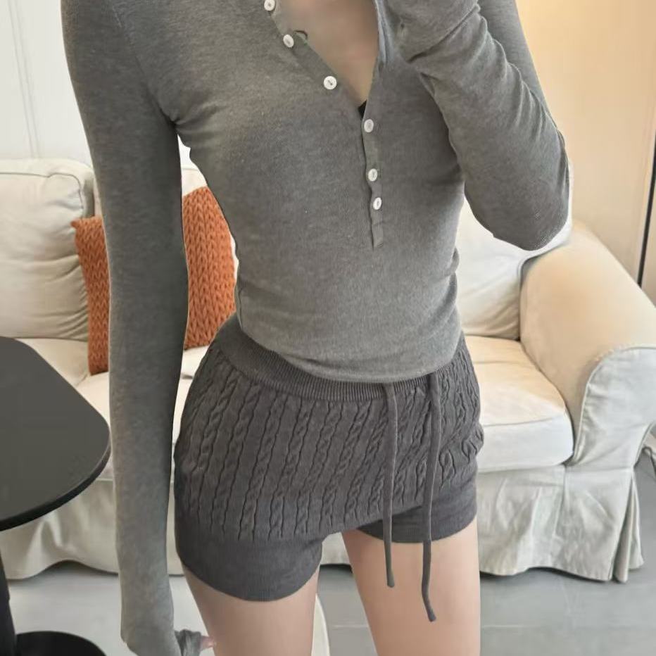 女高腰显瘦百搭休闲打底裤 麻花针织短裤 复古甜辣妹性感修身 美式