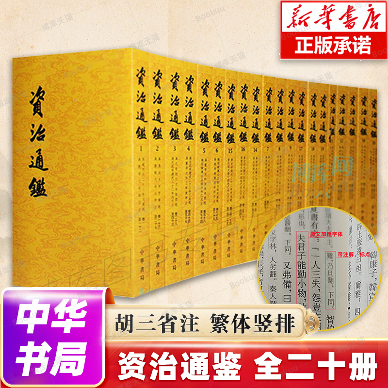 资治通鉴书籍正版 原著 历史书籍 繁体竖排 博库 史记二十四史中国通史 全二十册 古代编年体史书 中华书局全集无删减胡三省注