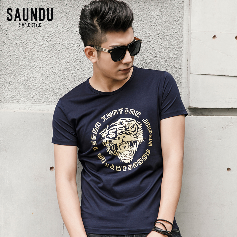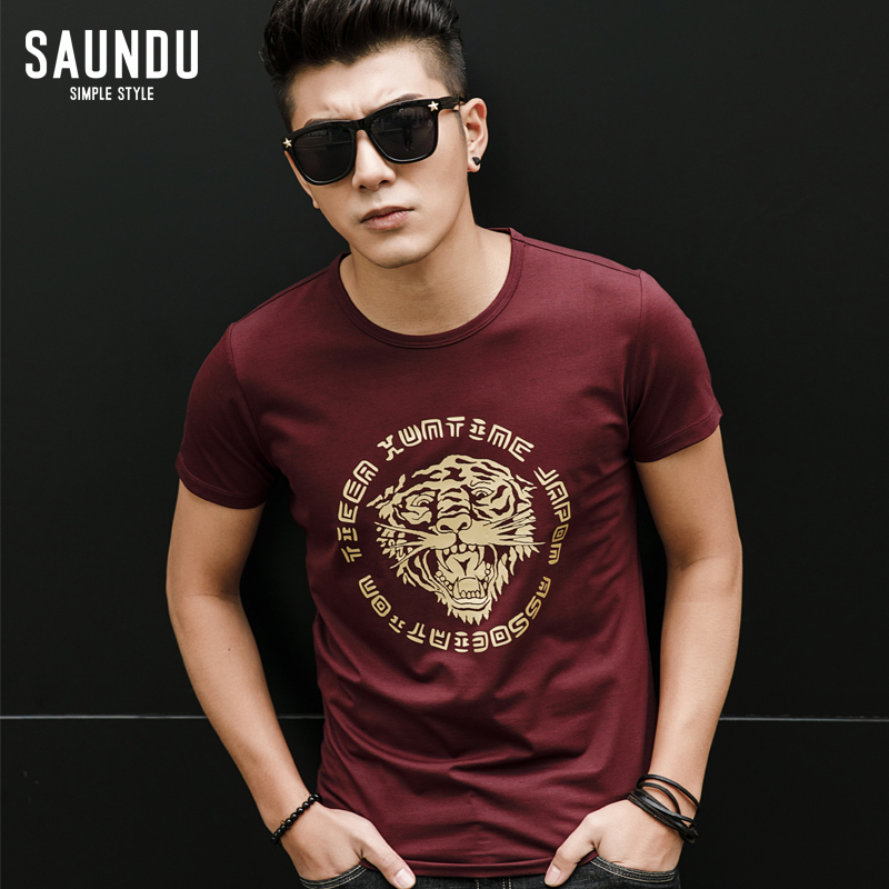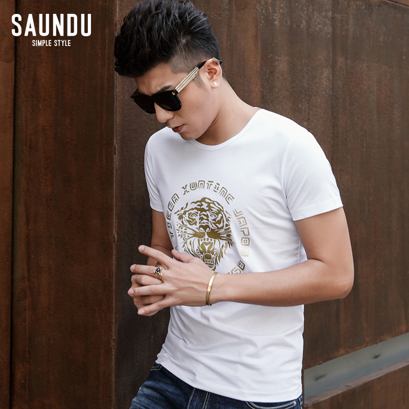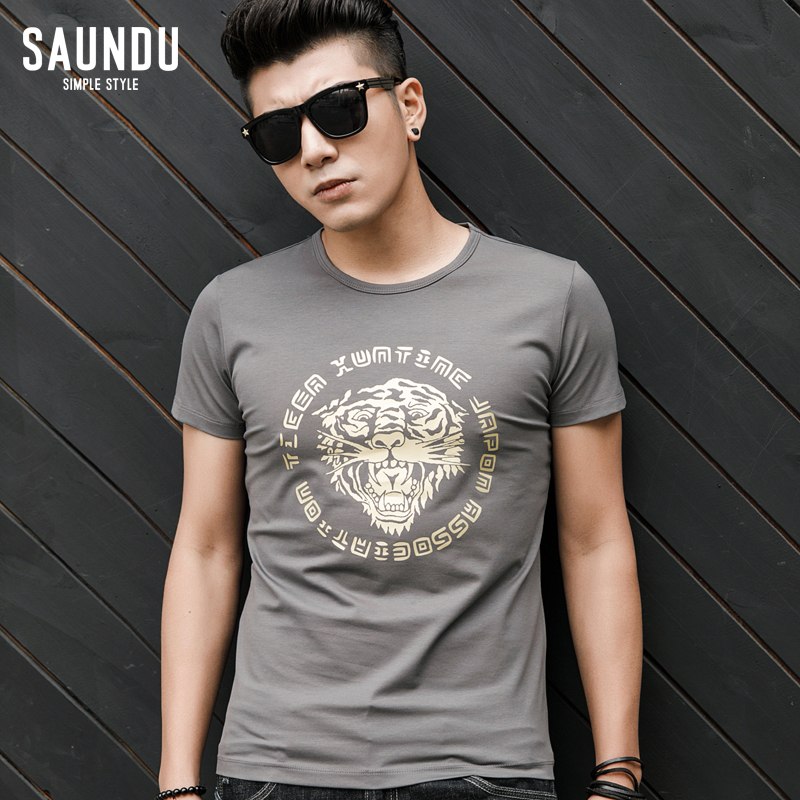 修身 上衣服黑色圆领烫金老虎头印花半袖 体恤 男潮2025新款 t恤短袖
