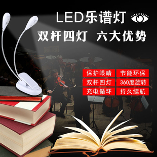 谱架灯LED充电乐谱架灯钢琴吉他乐器USB夹式 谱台灯双头4灯可调节