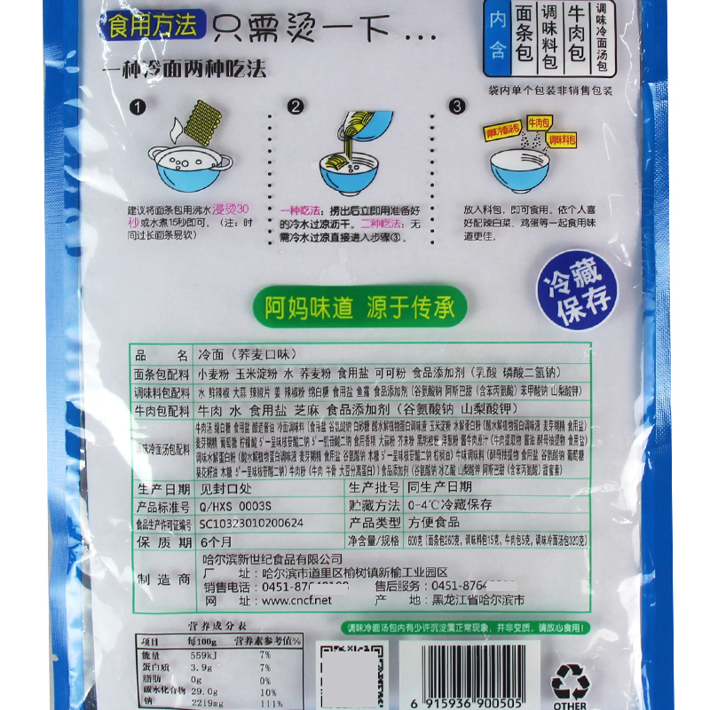 升元 3袋朝鲜族冷面凉面带汤料包韩氏荞麦冷面凉面 冷面600g