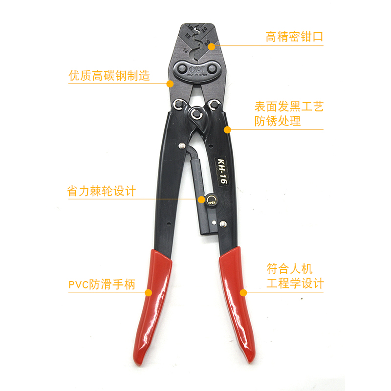 台湾OPT压线钳棘轮式 16绝缘端子压接钳进口冷压钳 裸端子KH