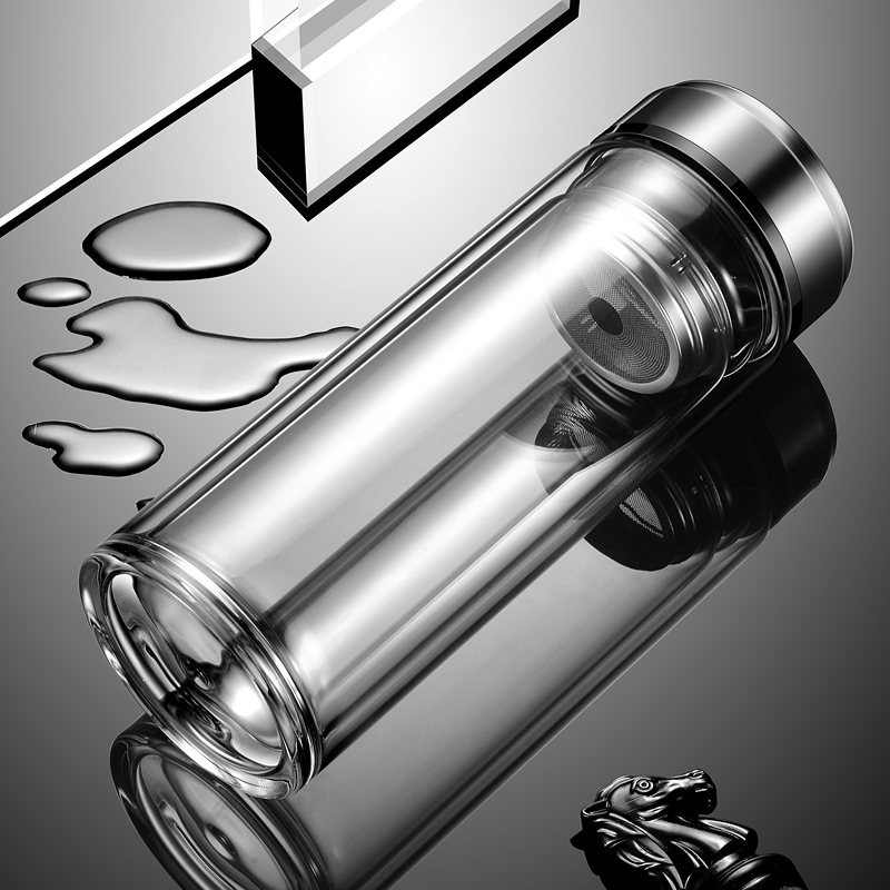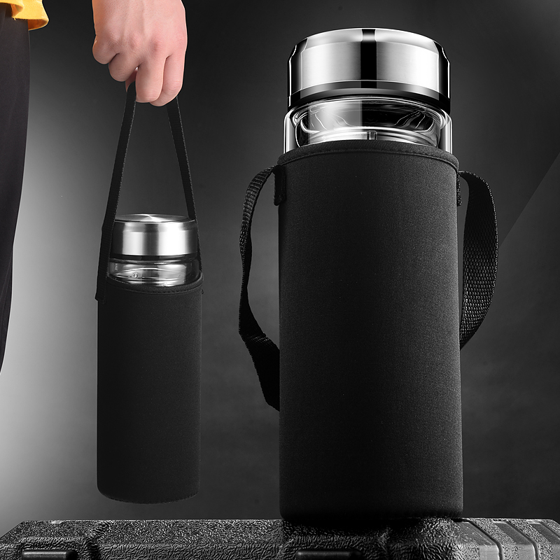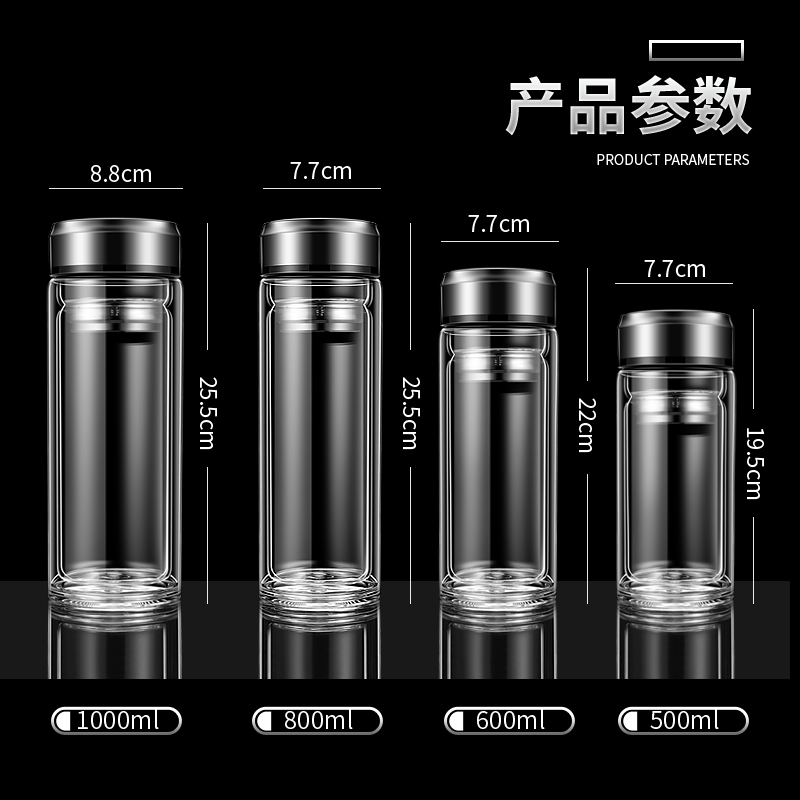 双层大容量玻璃杯隔热水杯茶杯车载便携喝水男透明家用加厚1000ml