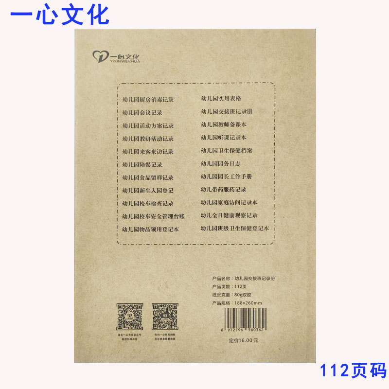 饮食情况上 安全 下午记录本 幼儿在园活动 一心文化幼儿园交接班记录册
