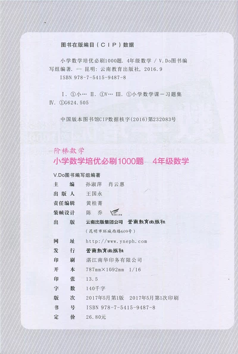 四年级 全脑训练 阶梯数学 全新正版 丛书主编 云南教育出版 数学培优 肖云惠 小学 社 必刷1000题 孙淑萍 4年级