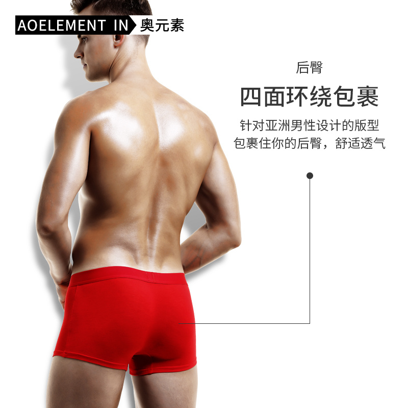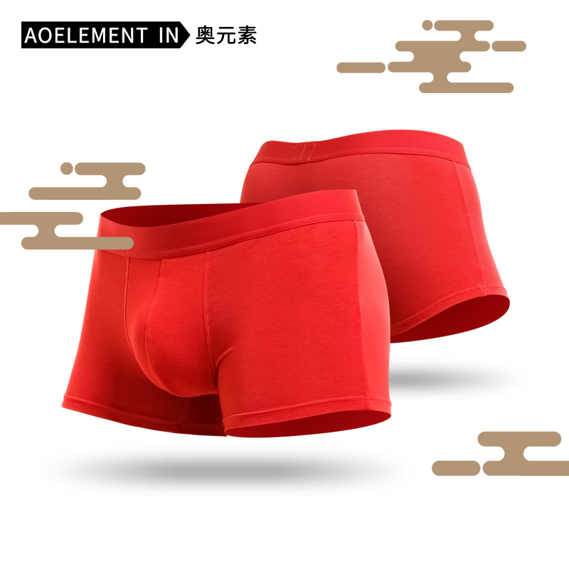 内裤 头底裤 男平角裤 礼物属兔大红色结婚薄四角裤 衩 本命年男士 男士