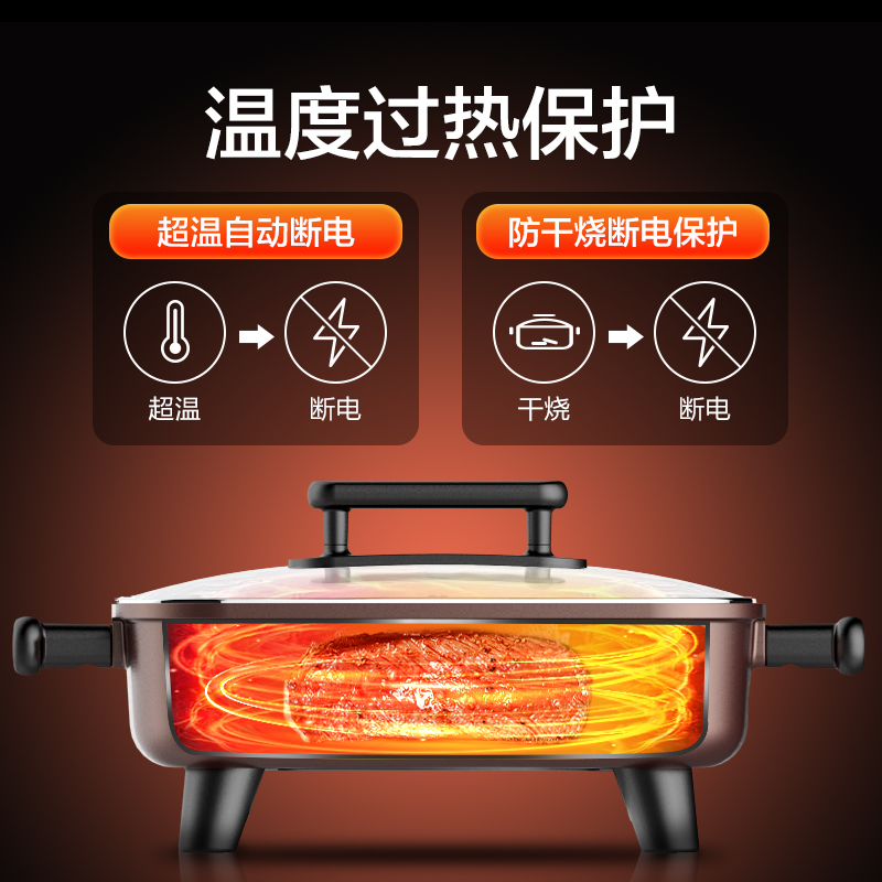 电热火锅电锅官方正品 美 电火锅家用加深加大多功能电煎锅新款