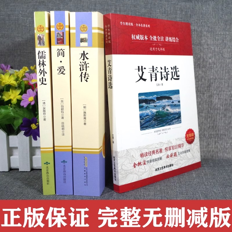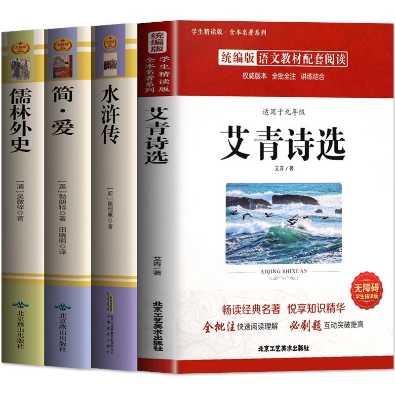 艾青诗选水浒传简爱儒林外史正版 书目世界名著阅读 原著未删减 推荐 外国小说文学诗歌精选书籍 初中生九年级上下册人教版 全套4册