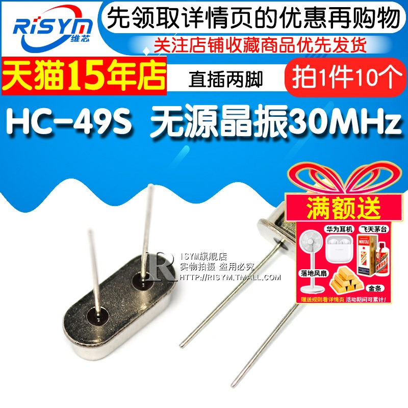 石英晶振晶体 Risym 30M钟振 49S无源晶振 10个 30MHz直插两脚HC