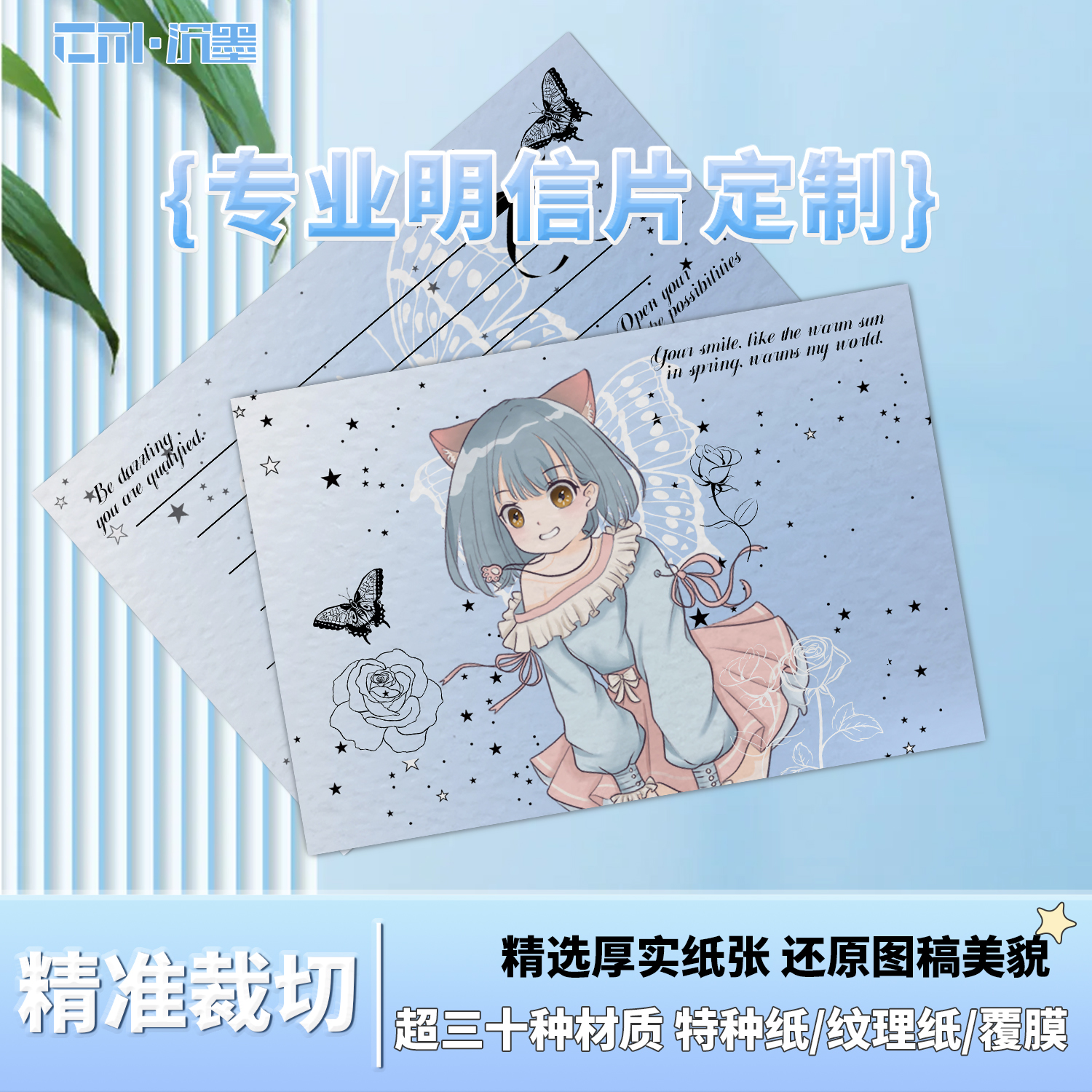 沉墨明信片定制8张一套配硫酸纸信封个性 明信片diy照片打印创意卡片自制可邮寄祝福明信片白卡纸珠光纸印刷