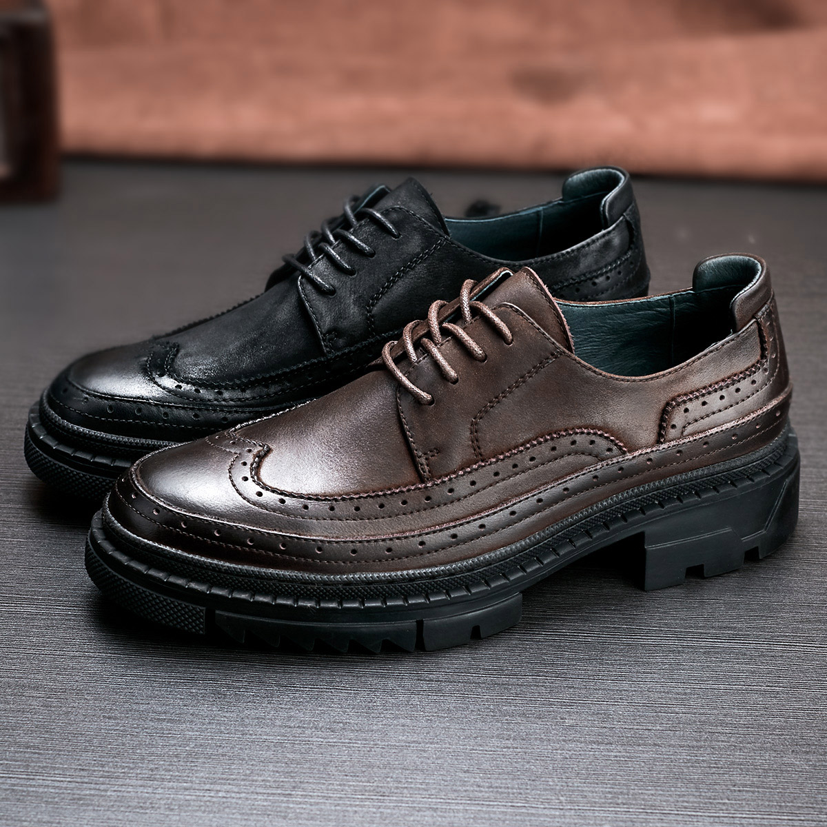 增高单鞋 达芙妮女鞋 百搭黑色英伦小皮鞋 女2025秋冬新款 厚底乐福鞋