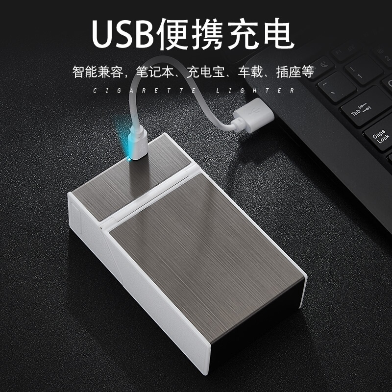 定制刻字 男士 20支装 双电弧充电打火机一体烟盒USB防风点烟器个性