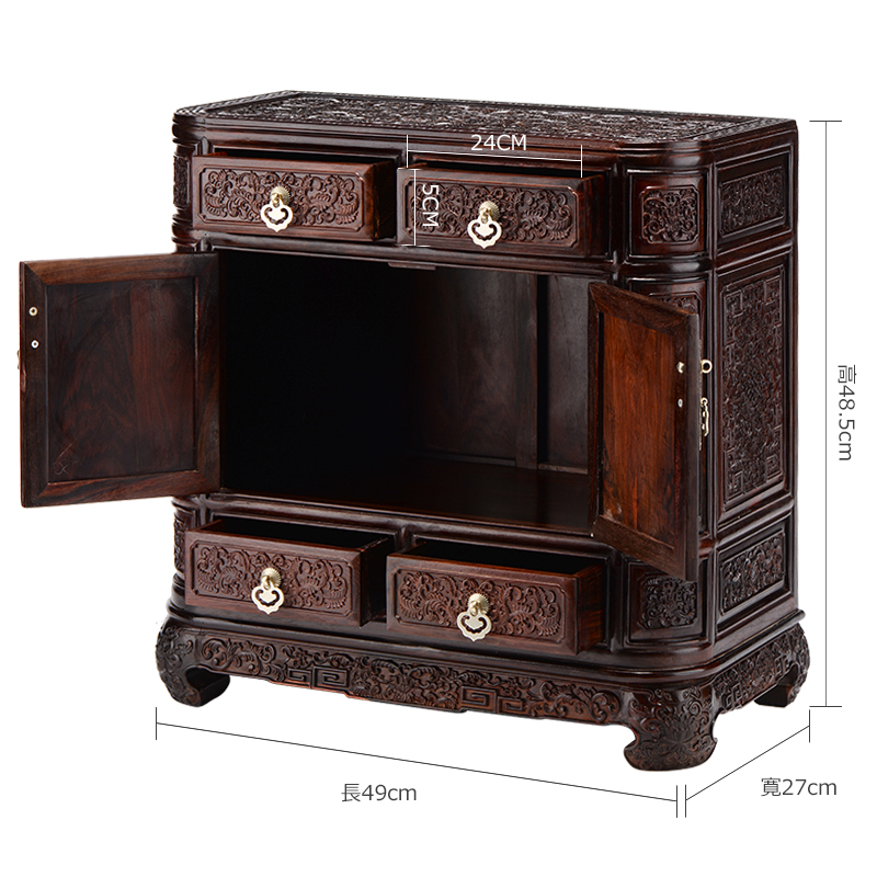 老挝大红酸枝百宝箱红木珠宝箱首饰收纳盒龙柜实木手工雕花储物柜