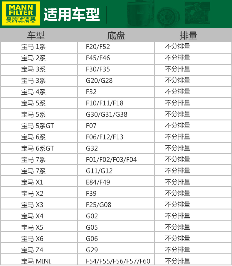 适配宝马1系新3系4系5系6系7系X1 MINI汽滤汽油滤芯曼牌燃油格