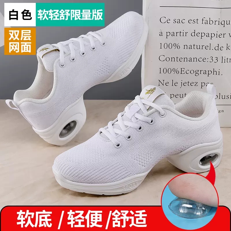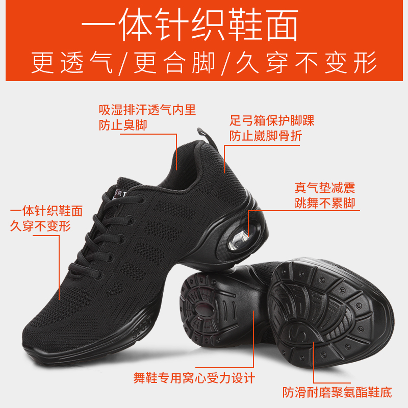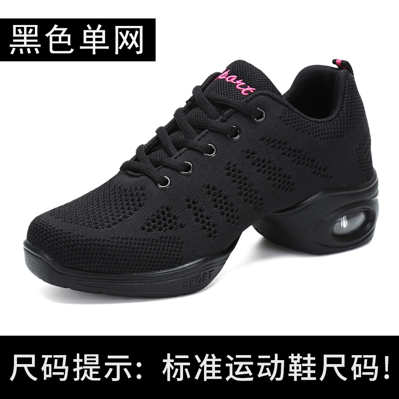 女中跟软底黑色跳舞鞋 网面成人爵士运动舞蹈鞋 广场舞女鞋 春秋新款