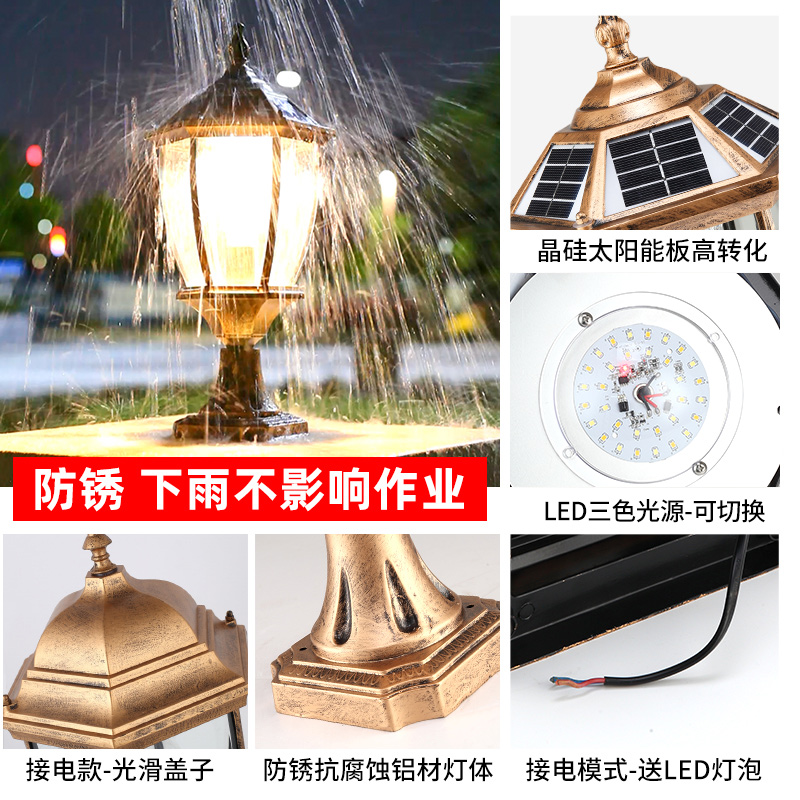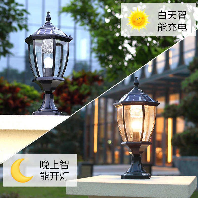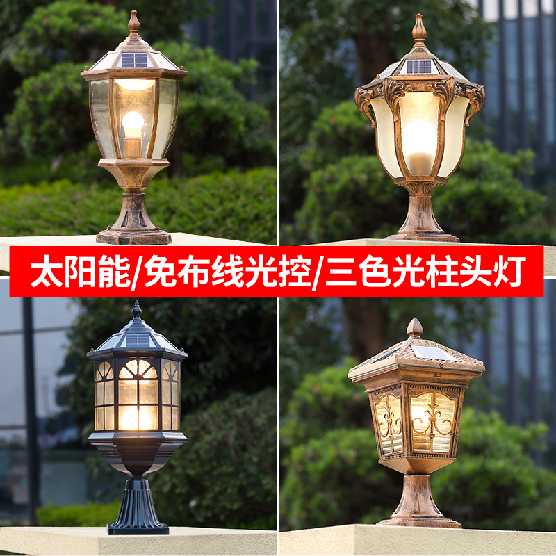 欧式 围墙灯太阳能超亮户外防水庭院室外别墅大门口柱子墙头柱头灯