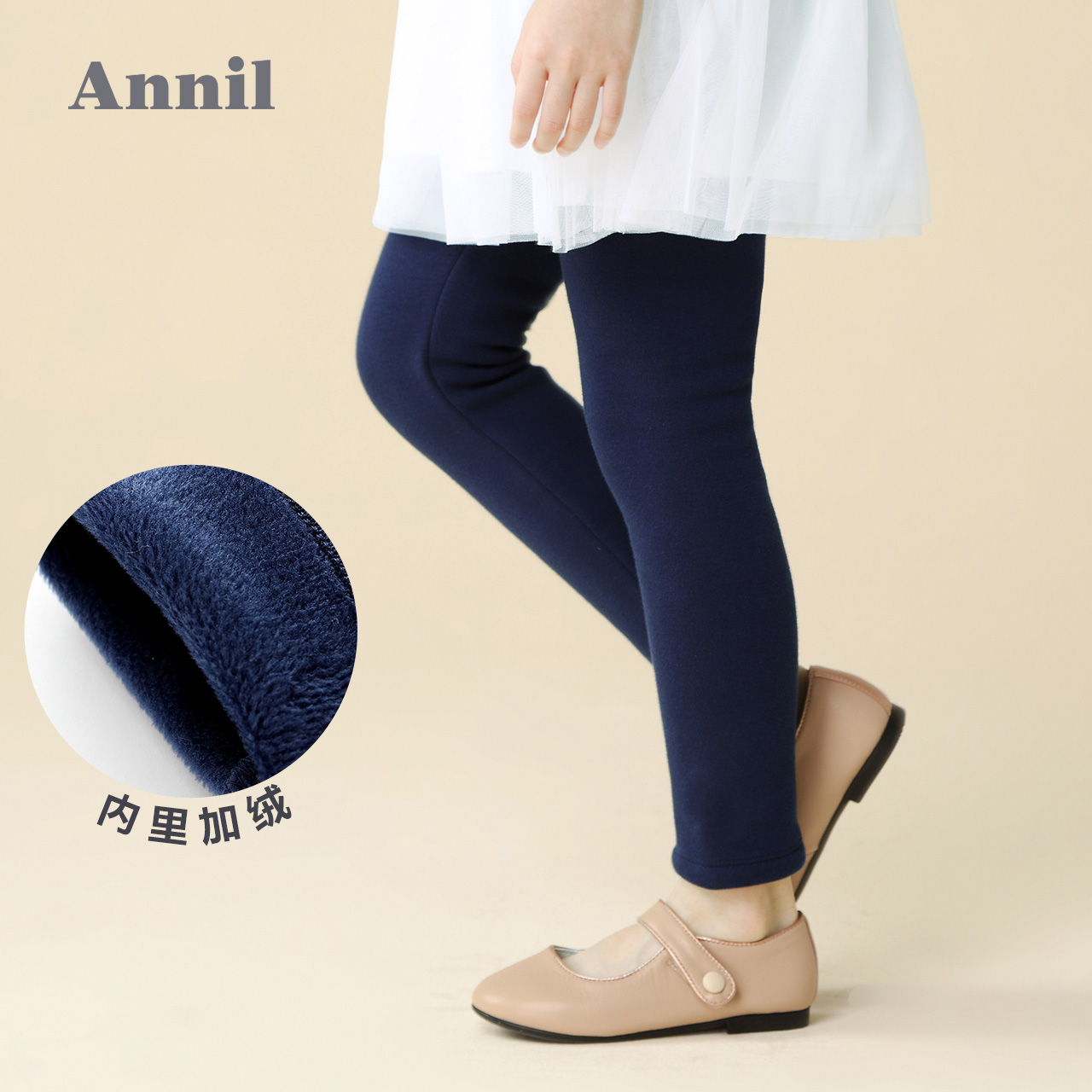 加绒黑色打底裤 外穿长裤 秋冬季 加厚保暖弹力修身 款 安奈儿女童装