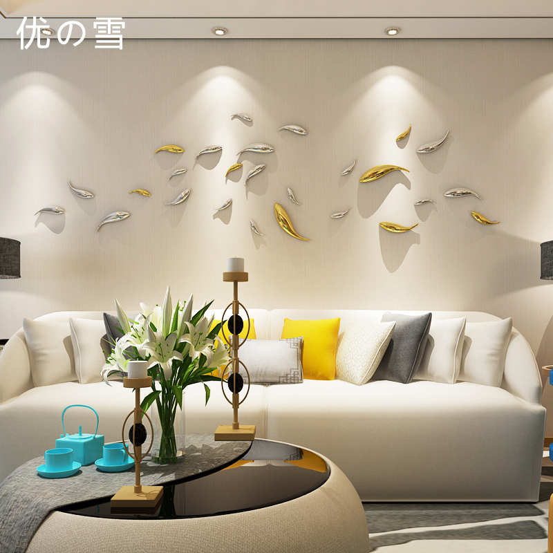 优雪客厅电视背景墙沙发墙贴挂饰创意立体鱼壁饰墙面免打孔装 饰品