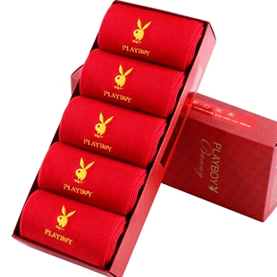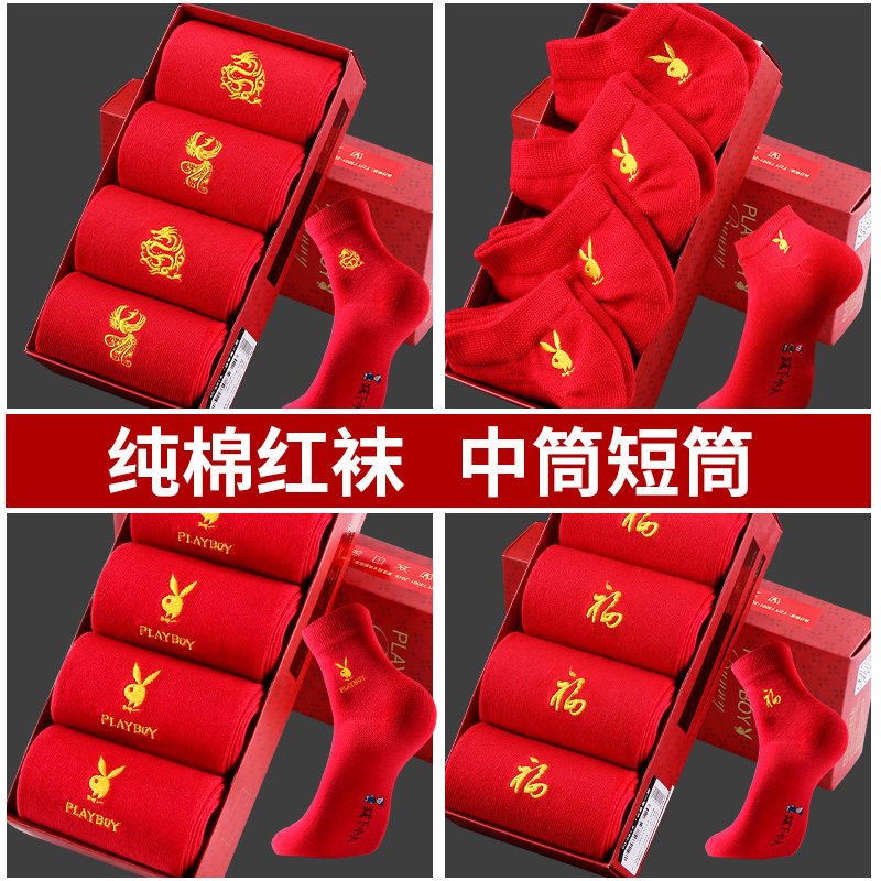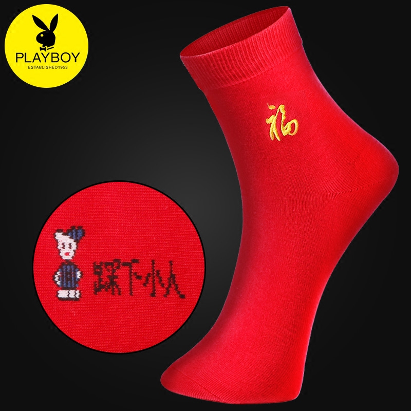 花花公子红袜子男本命年纯棉女秋冬季 长袜蛇年结婚情侣一对礼物 款