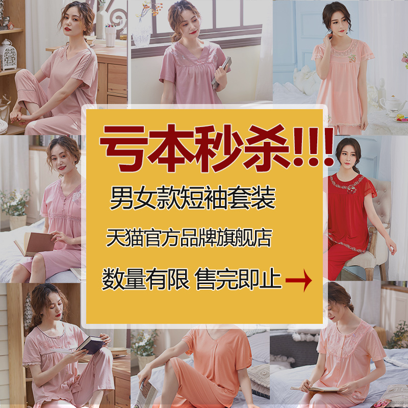 莫代尔棉短袖 薄款 男款 套装 家居服 断码 中年妈妈大码 清仓睡衣女夏季