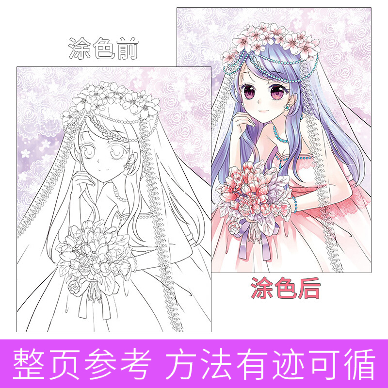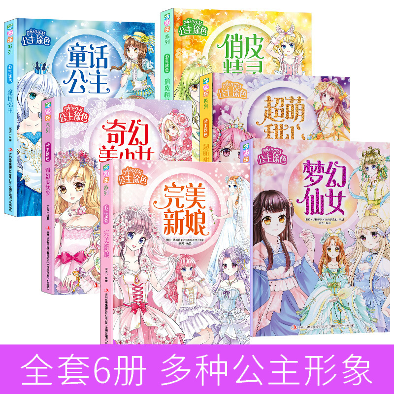 6本 公主涂色套装 公主涂色 宝宝涂鸦涂色画画书奇幻美少女完美新娘童话公主梦幻仙女俏皮精灵超萌甜心