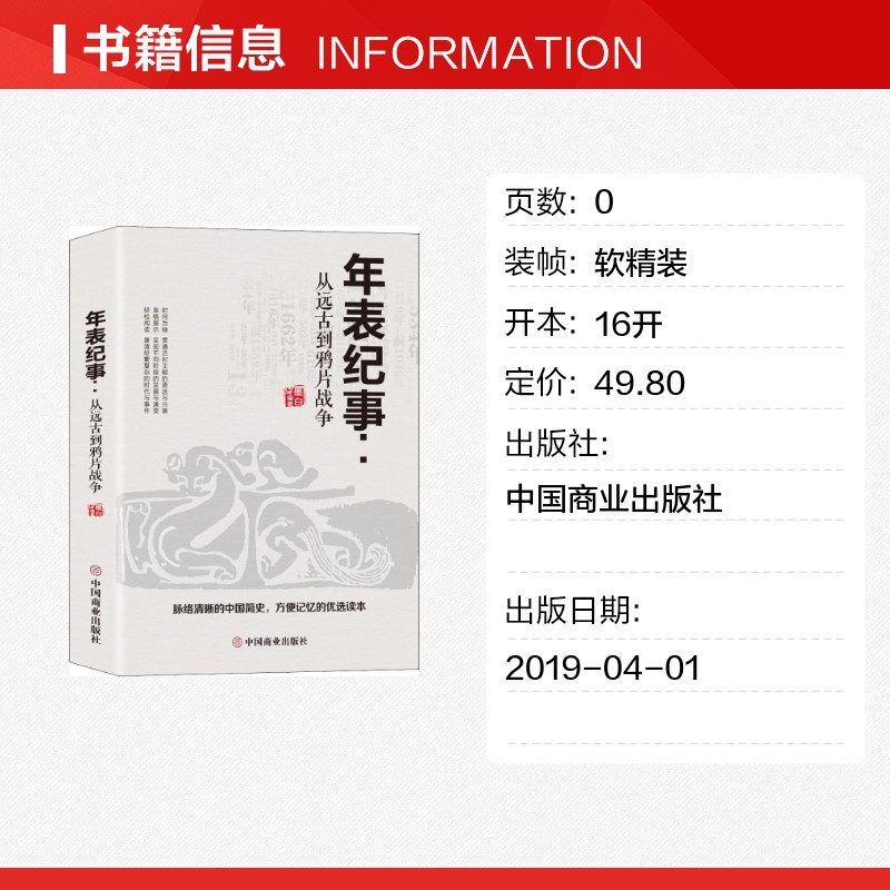 中国商业出版 墨白 社 正版 新华书店旗舰店文轩官网 年表纪事 书籍 从远古到鸦片战争