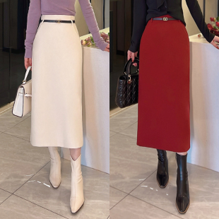 通勤百搭显瘦a字长裙子 高腰中长款 毛呢直筒半身裙女冬季 2025新款