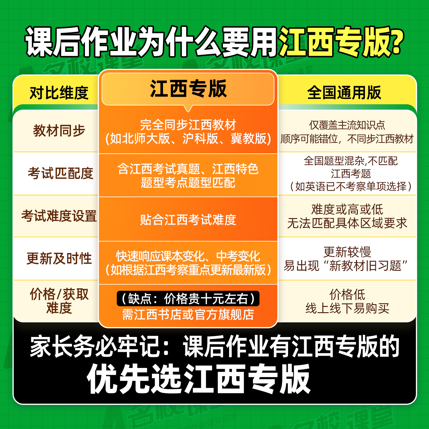 语文七八年级上册数学英语物理化学道德与法治历史九年级下册初中教辅随堂同步练习册一课一练必刷题 名校课堂 2025秋江西专版
