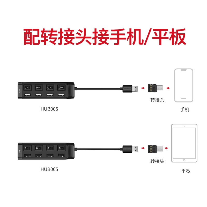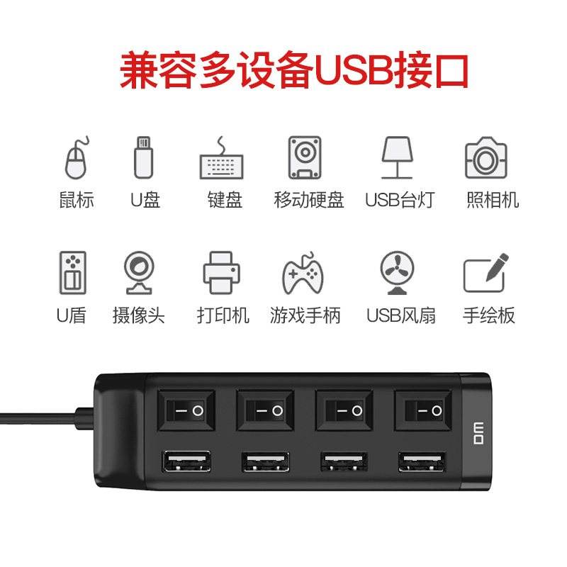 直插式 笔记本拓展坞hub集线器 可控制扩展坞带供电口 usb插头多接口转换分线器 DM大迈usb扩展器带开关