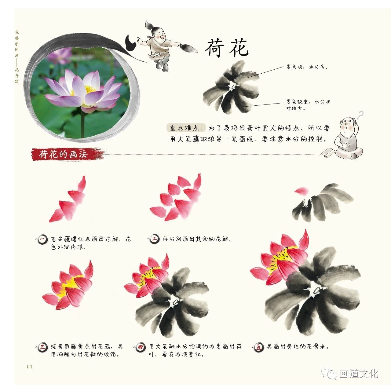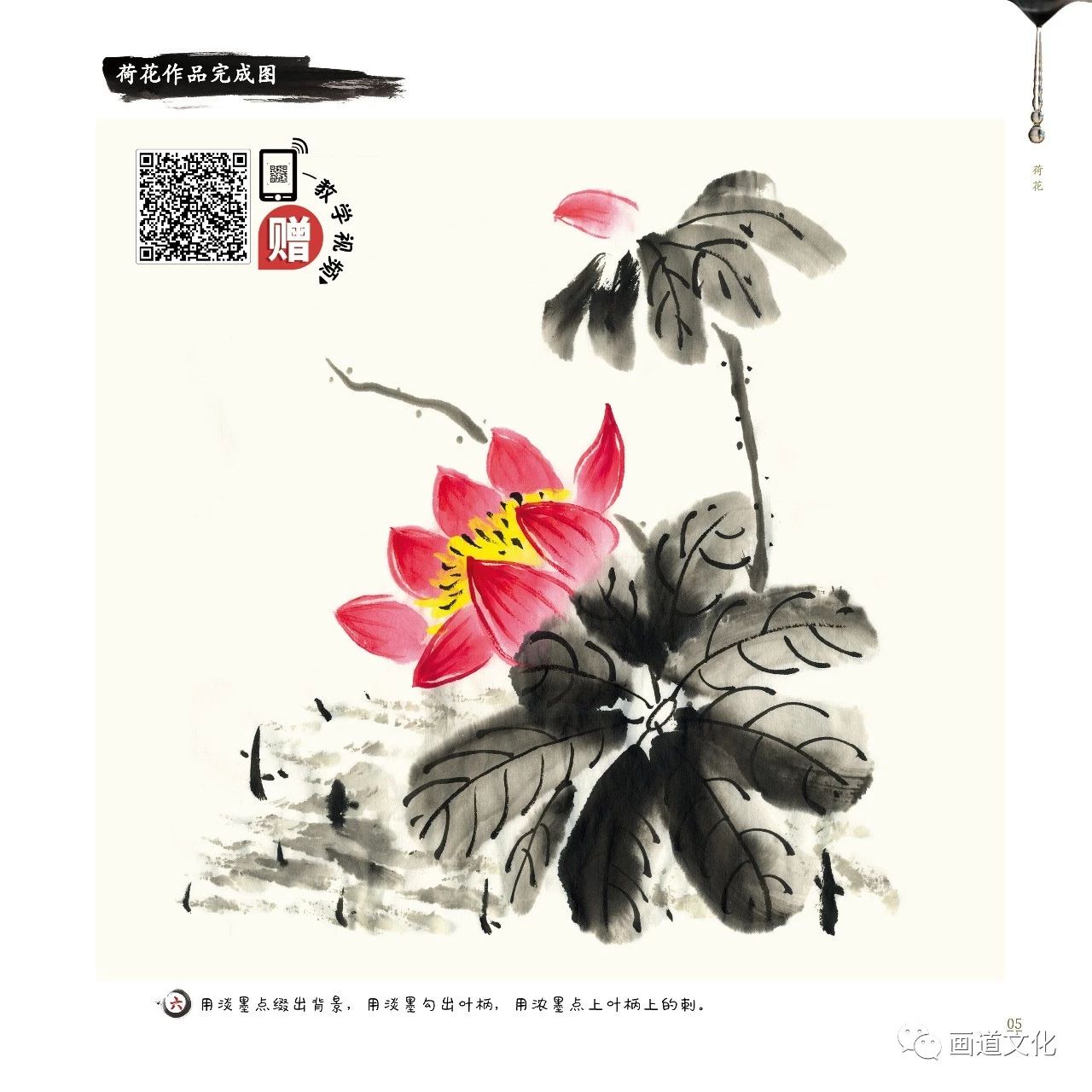 儿童美术书 绘画技法教材 彩色水墨画 国画入门 初学者零基础快速学会 花卉篇 毛笔画 赠教学视频 少儿国画基础教程