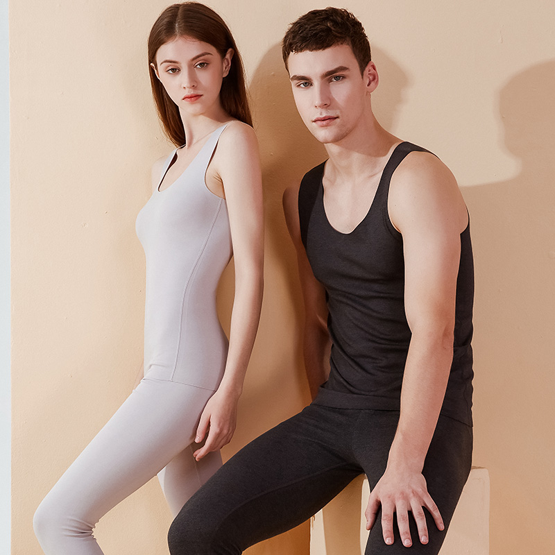 情侣德绒无痕自发热内衣男士 青年保暖背心女加厚加绒单件上衣秋冬