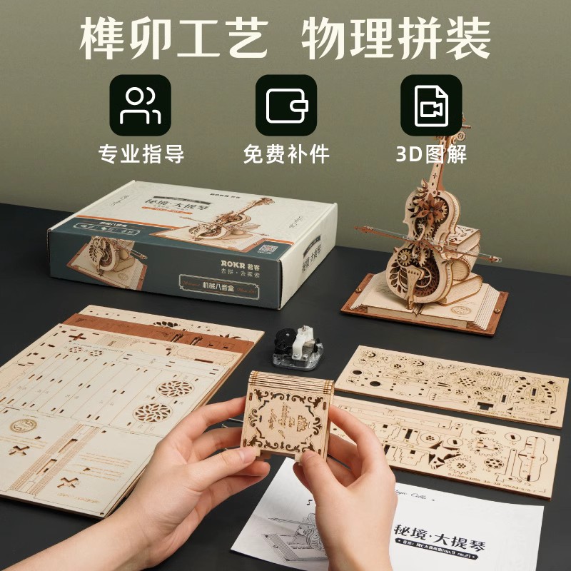 若态若客秘境大提琴八音盒高级感木质拼装 模型积木玩具生日礼物女