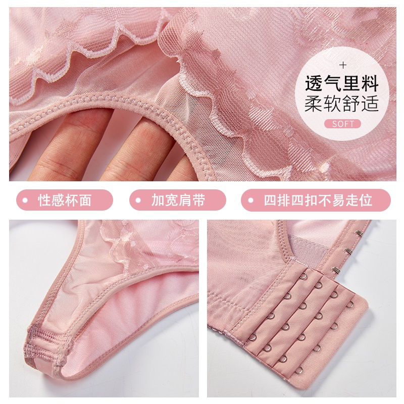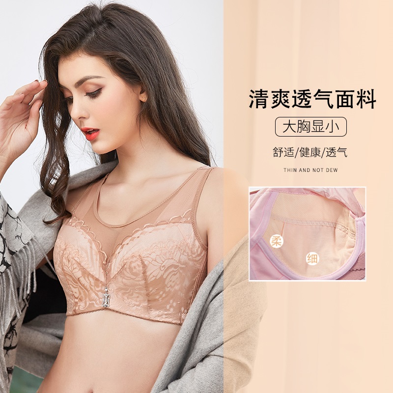 大胸显小防走光文胸薄款 有钢圈聚拢防下垂收副乳内衣女全罩杯超薄
