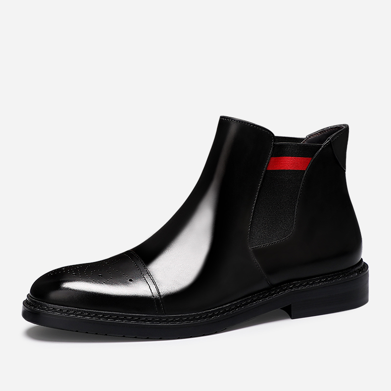 马丁靴男英伦风高帮皮鞋 秋冬真皮切尔西短靴男潮流布洛克雕花皮靴